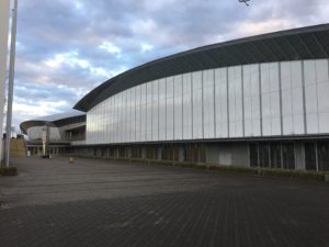 会場となった所沢市民体育館は西武新宿線新所沢駅より徒歩10分ほどの場所にある。航空発祥の地・所沢らしく、横から見ると翼を広げた飛行機のようにも見える。