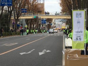 周囲一帯の交通規制も10:40になされ、ランナーがこの場に来る時を刻一刻と待ちます。
