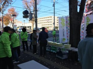 昨年と同じく、北浦和公園付近の埼大通りに設けられた給食所での運営補助に入りました。同所は38km地点にあり、ゴール前最後から二つ目の給食所となります。