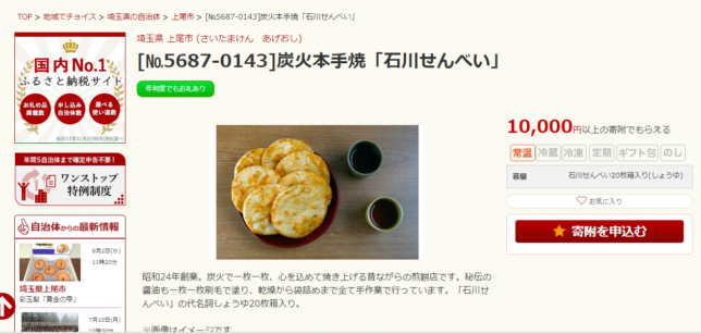 こちらのお店は、その長い歴史もあって上尾を代表するおせんべい屋さんとしての地位を確固たるものとしていますが、ふるさと納税の返礼品にもなっているように、各方面からの評価も非常に高いです。