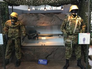 他にも防護服だけでなくバズーカやマシンガン、さらに戦闘糧食などの装備品が展示されています。