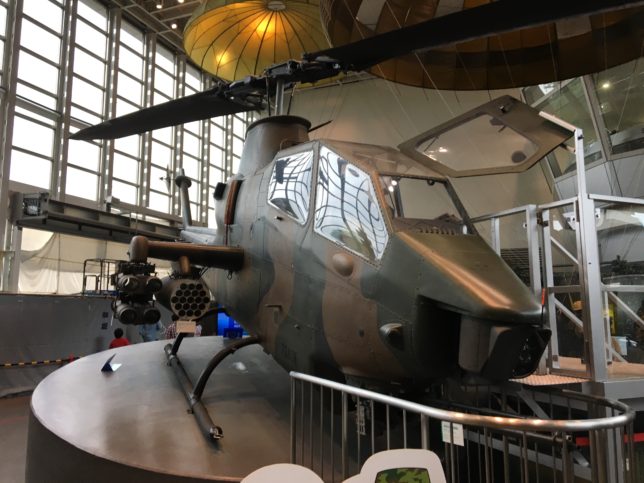 館内には世界初の攻撃ヘリコプターであるAH-1コブラと90式戦車の試作機を展示しています。