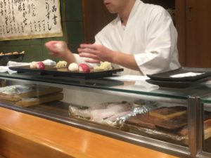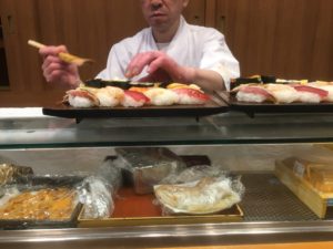 目の前でお寿司が