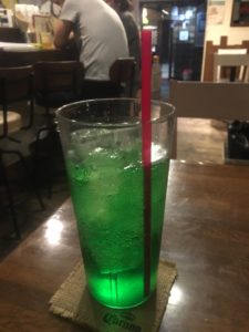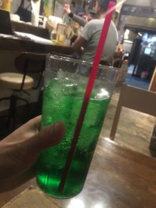 アルコール、でもいいのですが、家に帰って勉強や作業もあるので、ノンアルコールのメロンソーダを注文。