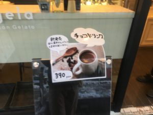 店内ではホットコーヒーやチョコドリンクなどの、ホットドリンクも提供中です。