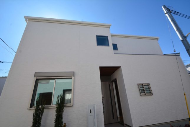 どの住宅もシンプルモダンの外観に木目調アクセントが映え、落ち着いた街並みを演出する。