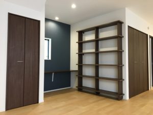 1階は約20帖のリビング・ダイニングから成るが、物入れを2か所配している。リビングにこれだけ物入れがあるのはなかなか珍しいかもしれないが、急な来客があった時にもすぐに物をしまえそうだ。