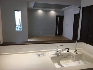 キッチンは対面式で、家族の様子を見ながら料理や家事が行える主婦層に人気の形式だ。