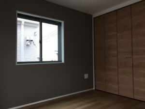 2階には5〜7帖の部屋を3室設けるが、いずれもクローゼットを配している。一番広い7帖の部屋は夫婦の寝室としての使用を想定して、壁紙も落ち着いた色合いにした。貼り替えにも対応しているという。