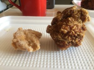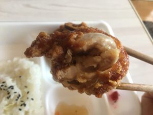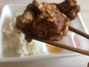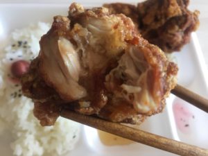 普通の唐揚げの3倍近い鶏肉が詰まっているので、フライドチキンに近いですね。