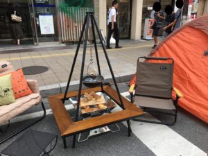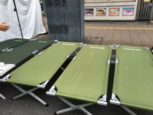 同社の扱うテントやチェアやランタンなどが出ていましたが、一部のベットなどには実際に寝てみたりして使い心地を体感できました。