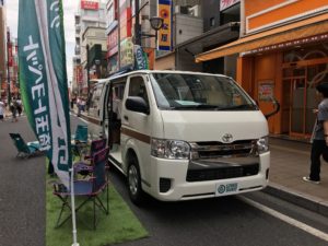 続けて埼玉トヨペットによるブース。トイファクトリーと共同で製作したキャンピングカー「Green Buddy」を紹介していました。