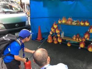 このうち毎日興業は啓発用の消火器を用いた的当てゲームを開催。水が出る消火器で火を模した的を制限時間内に倒していき、消火器による初期消火の重要性をPRされました。