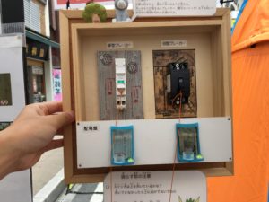 対策としてブースで紹介していたのが、電気ブレーカーへの錘。スイッチ部に錘を掛けることによって揺れが起きた際に重みでブレーカーが落ちます。