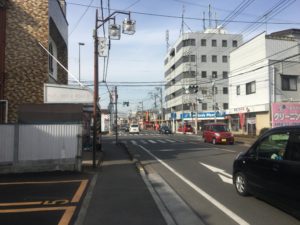 しばらく進むと、東大成小学校入口の交差点に突き当たりますが、