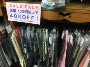 現在閉店セールとして、洋服を1000円以上ご購入されると、40%OFFになるとのことです。