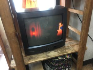 親御さんが商品を手に取っている間に、DVDが見られるスペースがあります。
