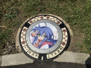 「ファイブスター物語」や「機動戦士ガンダム the origin」、春日部市や久喜市を舞台にした「らき☆すた」のマンホールもある。