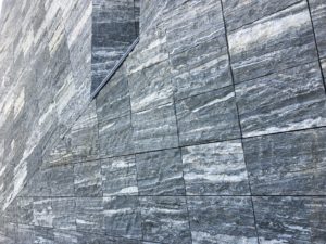 多面体状となった表面には、中国で切り出した花崗岩のプレート約2万枚が貼られている。