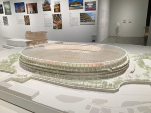 同館に関しては石を主眼に置いたが、同氏の代表作である新国立競技場では日本人が古くより木造建築に利用してきた細い木材に着目。「もったいない精神」や繊細なものを好む嗜好が見事に反映され、五輪へ向け新時代の日本のシンボルが出来上がったといえよう。