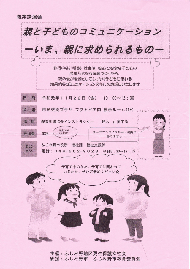 ◆親業公演会「親と子どものコミュニケーション〜いま、親に求められるもの〜」於 フクトピア