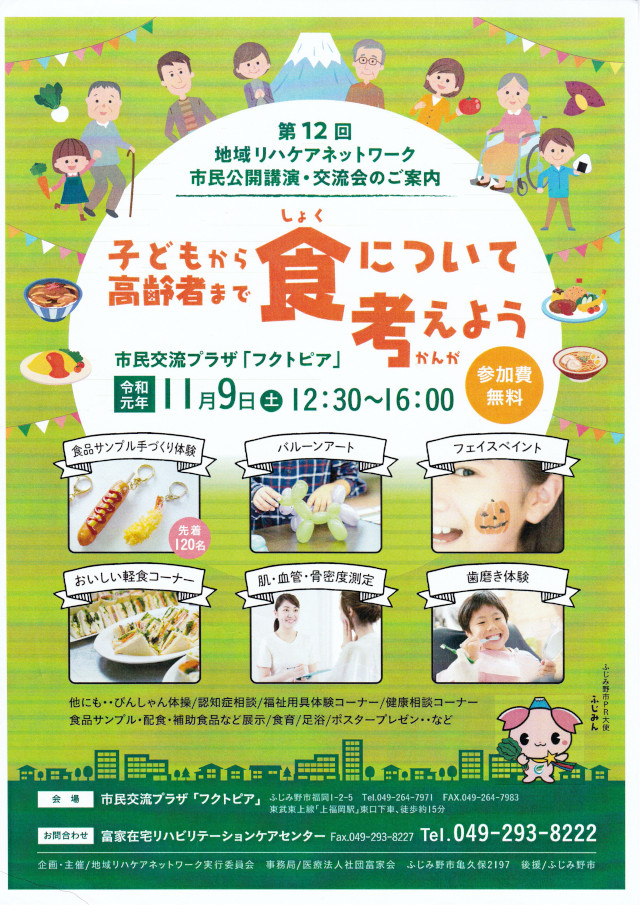 ◆市民公開講演・交流会「子どもから高齢者まで 食について考えよう」 於 フクトピア