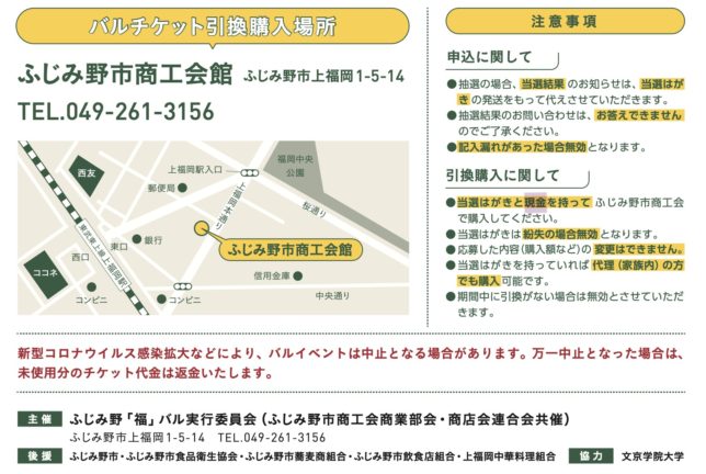 バルチケット引換購入場所:ふじみ野市商工会館(ふじみ野市上福岡1−5−14)
