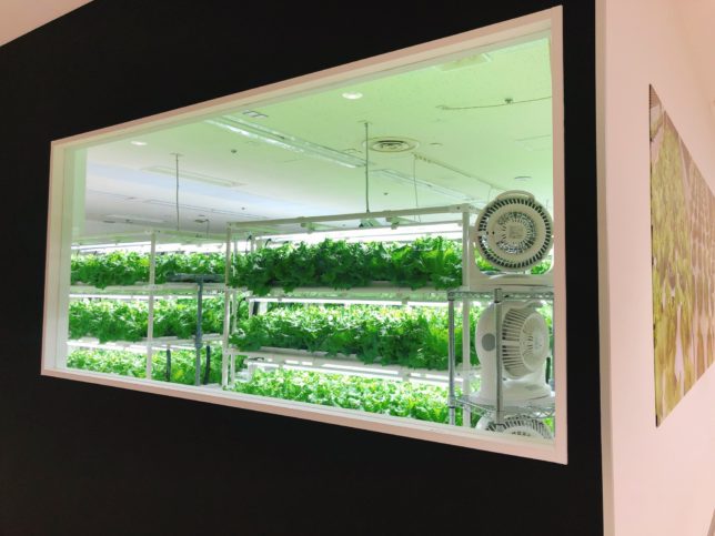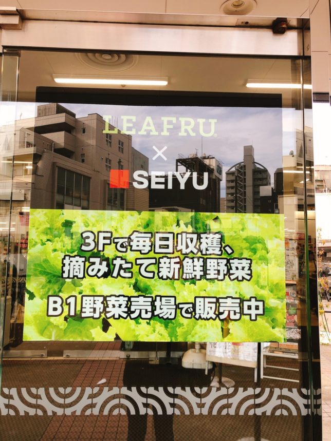西友3Fの植物工場で作られている水耕栽培レタスが1Fの食品売り場で売られています。