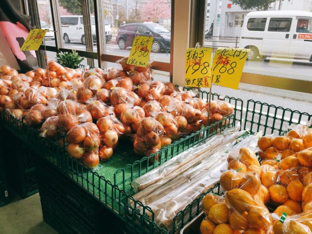 野菜と果物の店舗が道を挟んで隣にあって、精算は野菜コーナーの方になります。
