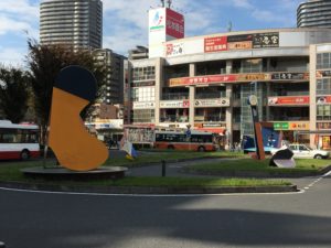 ロータリーには周囲の区画整理を記念して建てられたという彫刻類もあります。