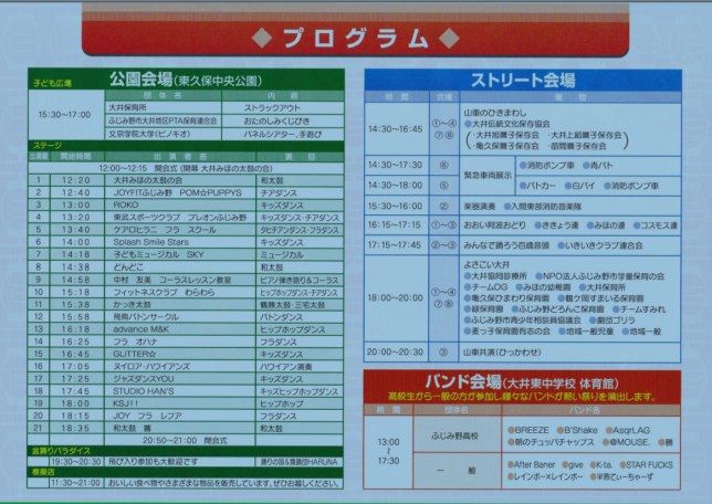◆第19回おおい祭り 於東久保中央公園および周辺道路、大井東中体育館