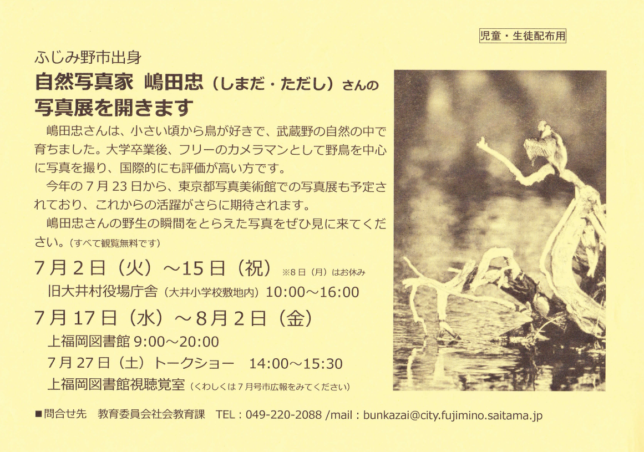 ◆自然写真家 嶋田忠さんトークショー 於上福岡図書館
