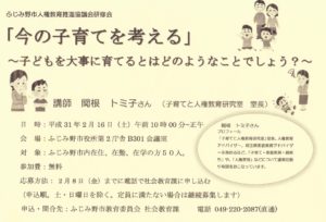 ◆「今の子育てを考える」〜子どもを大事に育てるとはどのようなことでしょう?〜 於 ふじみ野市役所第2庁舎
