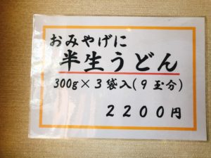 店内にチラシが貼ってありますが「半生うどん」がお持ち帰りできます。