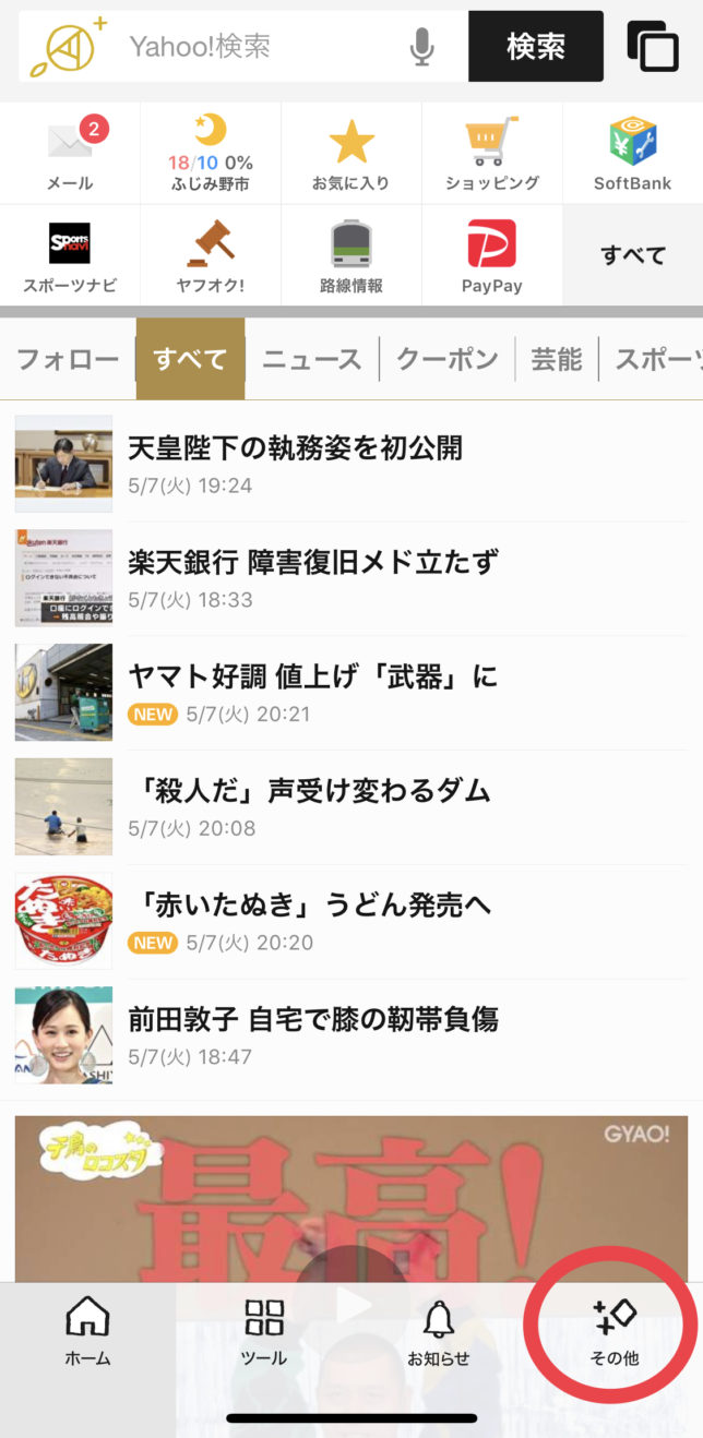 ところがYahoo!公式アプリを開いても、固定資産税の支払いの入り口が見つからず。