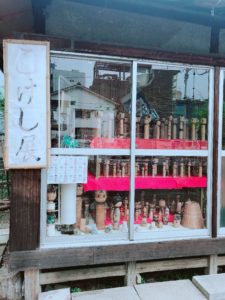 社務所?の一角に「こけし展」と書いてありこけしがたくさん飾られていました。
