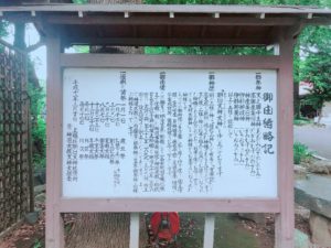 八雲神社は商店街の2つの通りの間にあるので、本殿の裏にも商店街がある感じなのですが、裏手を通っていてたまたま気がついたのですが、こんな案内が額に入れて掲示されていました。