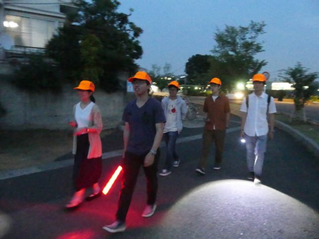 防犯ボランティアとは、芝浦工業大学から東大宮駅まで地域の防犯を呼びかけるイベントです。これを月に1回行なっています。