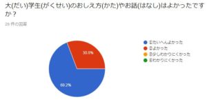 ・学生のみなさんがとても優しく教えて下さり楽しんで工作できました。 夏休みのよい思い出になりました。ありがとうございました。(保護者)