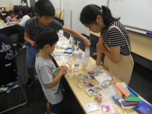 ・本日はありがとうございました。家ではなかなかできないような工作ができて、 とても楽しんでいました。親も一緒に参加でき、夏休みの良い思い出になりました。 大学生のお兄さんと交流でき、娘もよろこんでいました。 準備等大変だったと思います。どうもありがとうございます。(保護者)