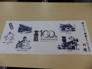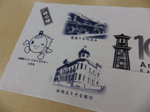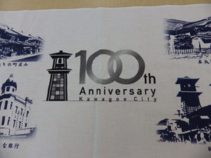カレンダーやタオルやうちわなどの印刷・販売を展開する五幸堂(川越市小室、神﨑橙一郎代表取締役)が、来年2022年の川越市市制100周年に向けて同市内の名所や100周年記念ロゴをあしらった「時の鐘手拭い」を展開している。