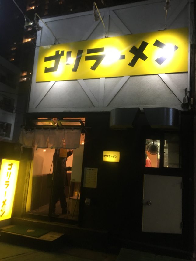 甘くてかわいらしいスイーツの専門学校のお隣に、ゴリラーメンというなかなかアレなラーメン屋さんがあるという光景