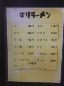 今回はそんな二郎系の一つ、ゴリラーメンにお邪魔してまいりました。