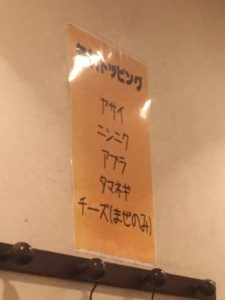 ちょっとななめっていますが、こちらのお店も御多分に漏れずトッピングも充実しています