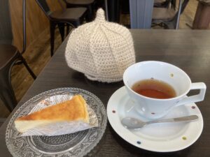 紅茶についてはキームンなど世界の品種を厳選して提供。ポットが冷めないようにと可愛らしい毛糸のカバーも目を引く。
