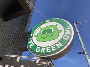 グリーンというのは趣味のゲームの所属チームに由来しているが、ふくろうをかたどったロゴや小物も娘さんが制作。西村さん夫婦や息子さんが接客するなど、家族で創る手作りのカフェとなっている。