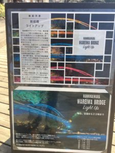 そんな同橋、夜になると毎日ライトアップが行われているのです。見る場所によって様々な情景を楽しむことができるこのライトアップ。