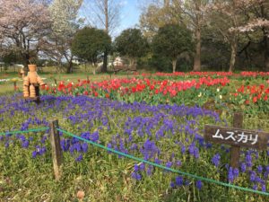 他にも同園内にはムスカリやネモフィラと季節の花が見ごろを迎えている。