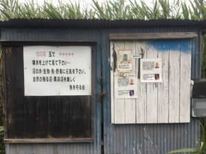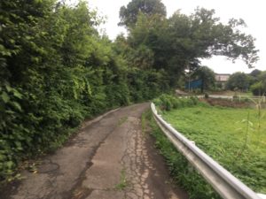 残念ながら規制線が張られており、しかも草も青々と生い茂っているため、内部の様子はうかがいしれません。