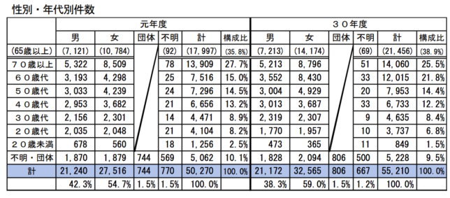 このほど、昨2019年度に県及び県内市町村で受け付けた消費生活相談の内容をとりまとめた埼玉県消費生活相談年報が公表された。